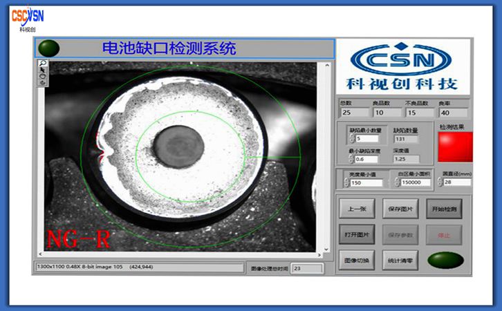 本系統(tǒng)用于檢測(cè)干電池正極口部變形檢測(cè)。干電池在生產(chǎn)中,不可避免的會(huì)出現(xiàn)擠壓、碰撞的情況,從而導(dǎo)致干電池正極的口部變形,進(jìn)而影響正極蓋片裝配不進(jìn)去,產(chǎn)出不良品。本系統(tǒng)在產(chǎn)線上連續(xù)運(yùn)行,動(dòng)態(tài)采圖,快速計(jì)算,及時(shí)排除不良品。